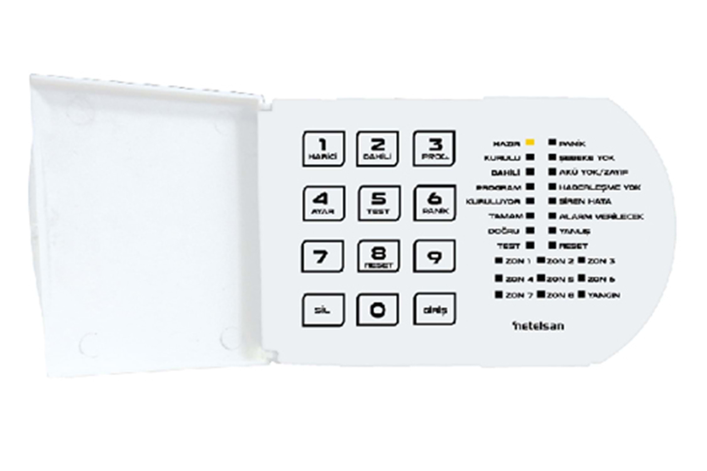 • Türkçe menü ile kolay kullanım • 128 X 64 Grafik LCD Ekran • Led Aydınlatmalı Membran buton • Yerinden söküldüğünde algılayan sabotaj switch • Değiştirilebilir Ekran ve Tuş parlaklığı • Tuş buzzer sesi açma – kapatma • Alarm sistemi tüm özelliklerinin menü üzerinden kolayca ayarlabilme • RF Sinyal tekrarlayıcı olarak kullanabilme • Sistem Durum Göstergeleri • Zon Durum Göstergeleri • Birden Fazla Tuş Takımının Beraber Kullanımı • Sesli Uyarı Verme • Yüzey Montaj Teknolojisiyle Üretilmiş • Uzaktan Kumanda Kaydı